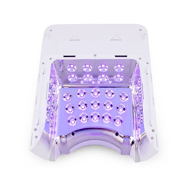 Esta lámpara LED incorpora la tecnología LED y de batería de ion de litio más avanzada para que los expertos profesionales en uñas puedan utilizarla en cualquier lugar y en cualquier momento. La lámpara incluye 39 luces LED, son híbridos, con una longitud de onda impresionante de 365-395 nm para curar el esmalte en gel o el gel UV de cualquier marca. Incluso incorpora cuatro luces LED diseñadas exclusivamente para curar el pulgar. Estos leds de última generación esta alojados en un espacio cónico el cual favorece la polimerización.