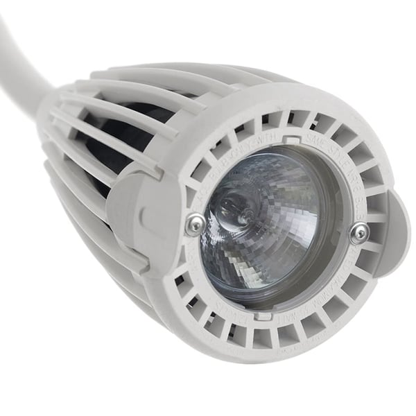 Su cabezal de ABS de doble recubrimiento reduce el calentamiento de la luminaria. De 85 cm de radio de giro y una pantalla de 75 mm de diámetro, ofreciendo un amplio alcance. Baja temperatura y sin radiación infrarroja.