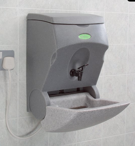 Portátil, higiénico, fácil de usar y fácil de limpiar, TEALwash lavamanos portátil se instala en la pared, aportando un punto de agua caliente para lavarse las manos donde más lo necesite.