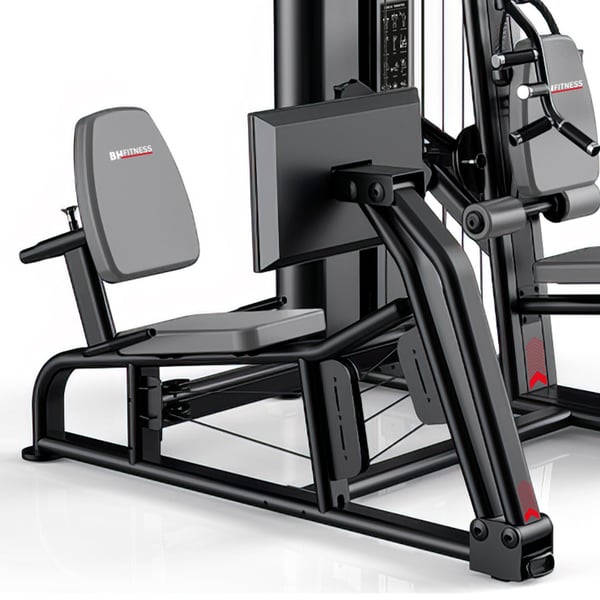 Una multiestación que ofrece una amplia variedad de ejercicios incluye un espacio para prensa de piernas, además, gracias a su estructura de acero reforzado y cómodos tapizados, podrás realizar tus entrenamientos de musculación sin salir de casa.
