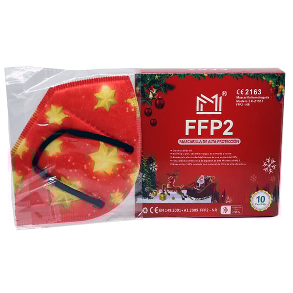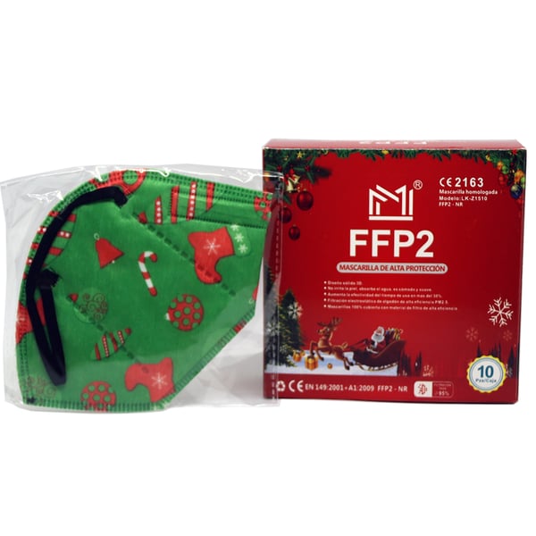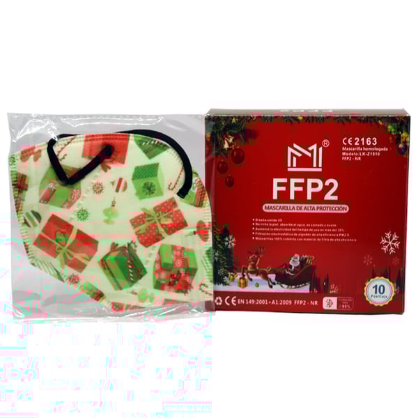 Mascarillas FFP2 de Navidad y certificado europeo CE (embolsadas individualmente - caja de 10 unidades)
