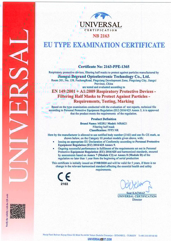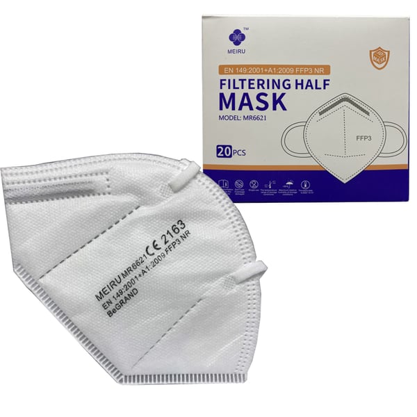 Mascarillas FFP3 con certificado europeo CE (embolsadas individualmente - caja de 20 unidades)