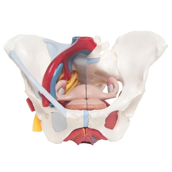 El modelo anatómico de pelvis femenina de seis partes está fabricada a partir de una pelvis original femenina y representa información detallada acerca de la topografía de los huesos, ligamentos, vasos, nervios, músculos del piso pélvico y órganos pélvicos femeninos.