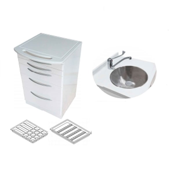Mueble en melamina blanco de alta calidad con diseño especial para la realización del trabajo de los profesionales dentales.