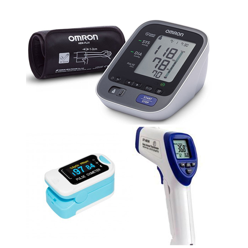 PACK AHORRO First Medical Diagnosis: Tensiómetro Omron M7 Intelli + Termómetro sin contacto + Pulsioxímetro de dedo