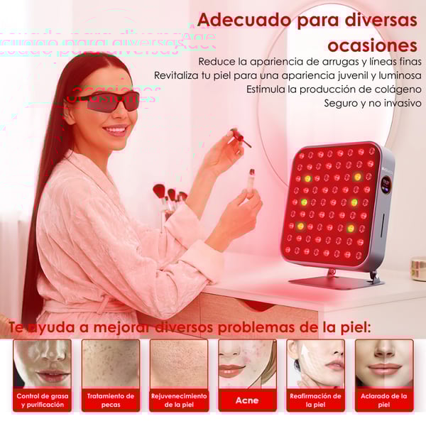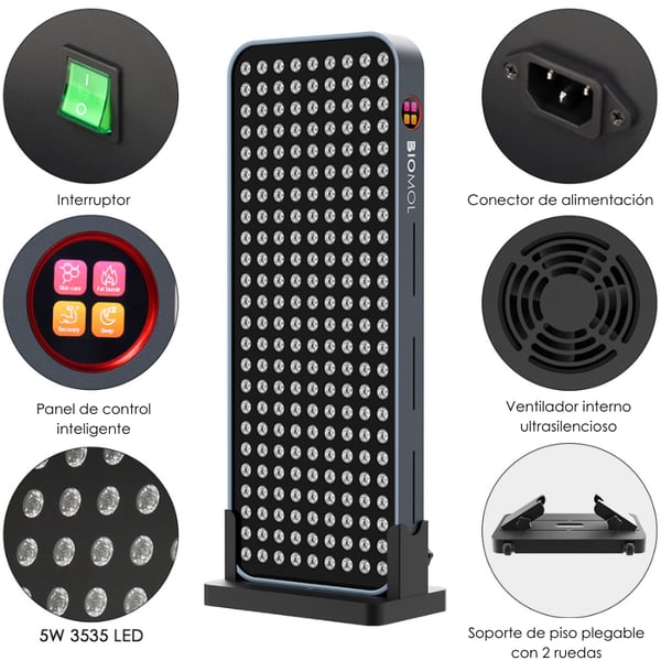 - Panel de uso corporal completo o segmentado, ideal para sesiones de fototerapia desde casa.