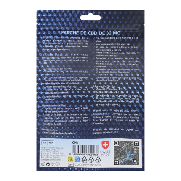 Carga: 32 mg de aislado de CBD puro por parche