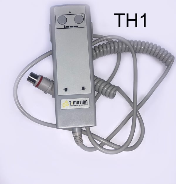 -Mando botonera de mano: TH1 (medidas 16*5 cm.), cable espiral, igual conector jack de 8 pines.