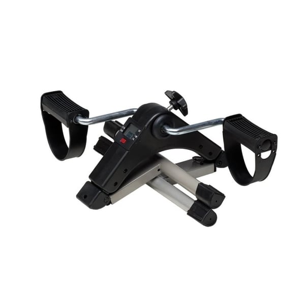 Pedalier con display digital para monitorizar los progresos del usuario, mostrando tiempo, revoluciones y calorías consumidas. Una manera fácil de ejercitar piernas o brazos, regulando la resistencia. Un pomo permite que el usuario incremente la dificultad a medida que los músculos se refuerzan.