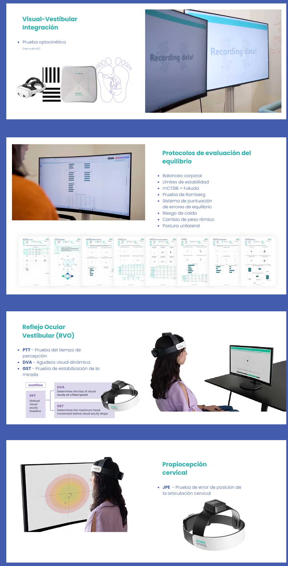 PhysioSensing Otoneuro System representa una nueva generación de tecnología clínica para la evaluación objetiva y rehabilitación de trastornos vestibulares y del equilibrio. Diseñado para profesionales en otoneurología, fisioterapia vestibular y rehabilitación, este sistema integra: