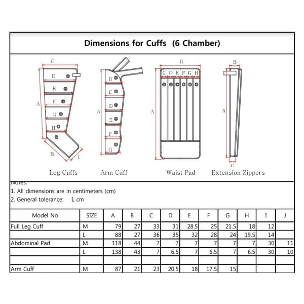 La presoterapia viene de serie con la talla 'L'. Consulte la guía de tallas y si necesita otra talla indíquenoslo a la hora de formalizar el pedido para poder entregarle la talla que mejor se adapte a su medidas.