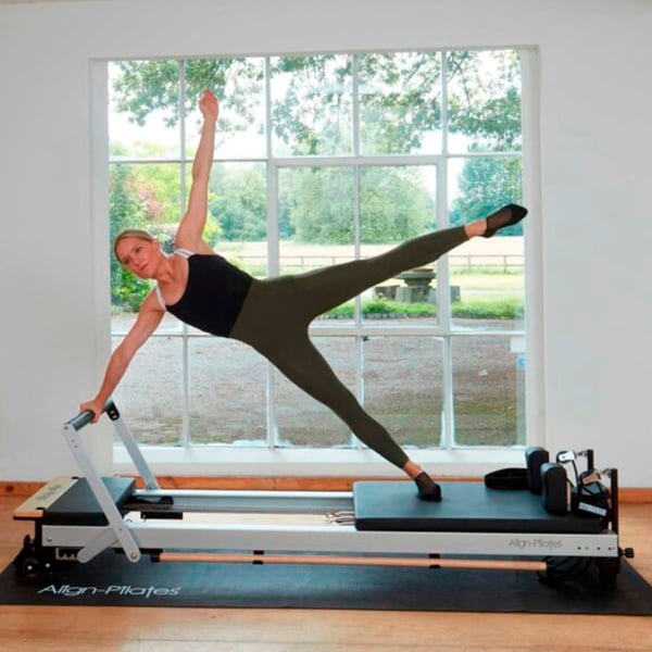 - Incluye el sistema 'Silent' de Align-Pilates con asas de doble lazo sin metal, cuerdas y correas para los pies, además de nuestras poleas silenciosas patentadas para una experiencia de usuario súper silenciosa