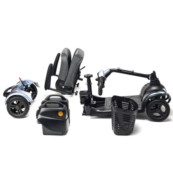 - Desmontable: puede desmontarse en cuatro piezas modulares para facilitar su almacenaje y traslado. Cuenta con baterías extraíbles para simplificar su recarga.