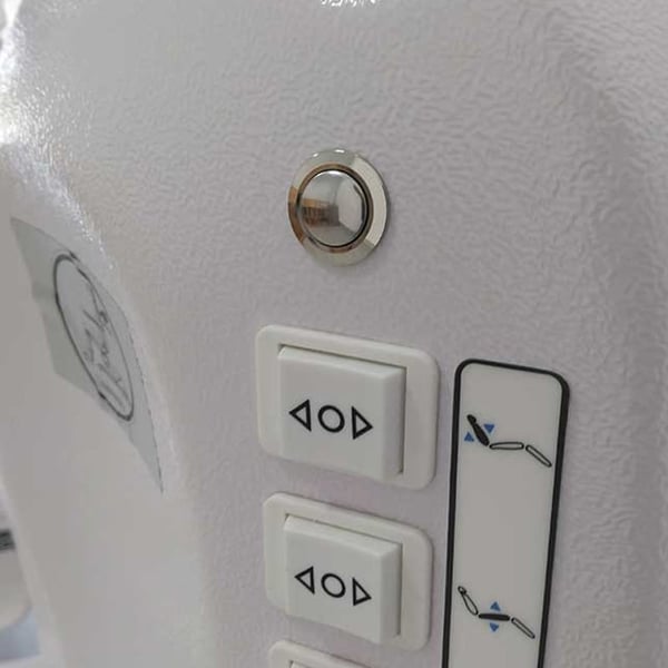 - Las botoneras integradas en el respaldo, el reposapiés y el asiento permiten un total control de los movimientos desde cualquier punto de la camilla.
