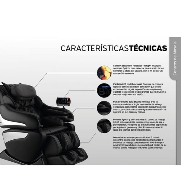 Características técnicas del sillón de masaje Milan