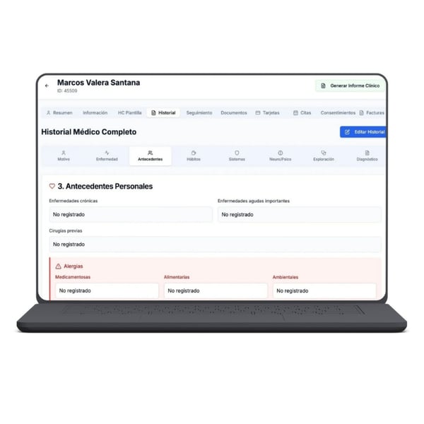 Historiales clínicos digitales accesibles desde cualquier dispositivo.