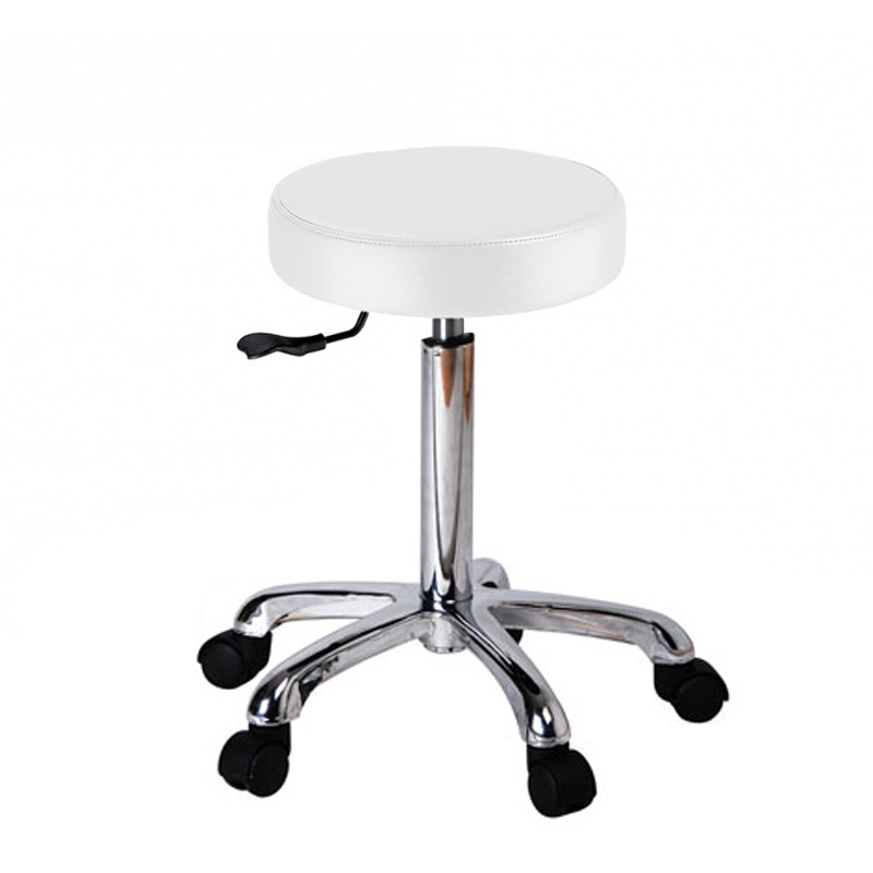Taburete sin respaldo Fast: Con elevación mediante pistón de gas y práctico asiento plano y circular (Color Blanco) - EXPOSICIÓN ¡ÚLTIMA UNIDAD!