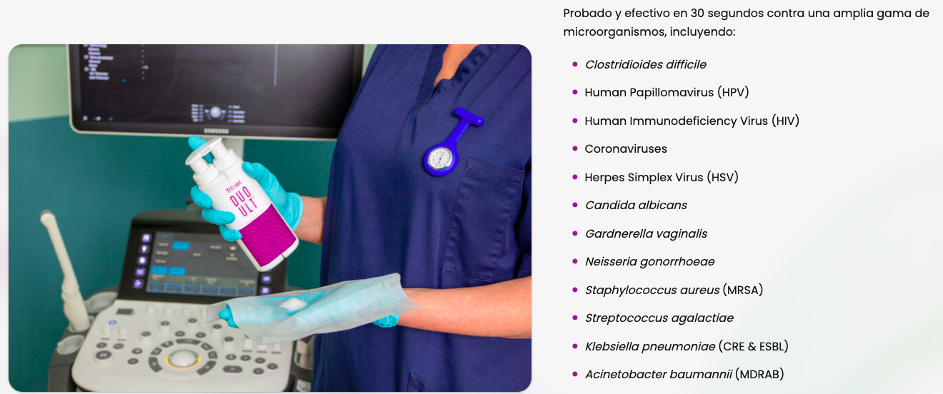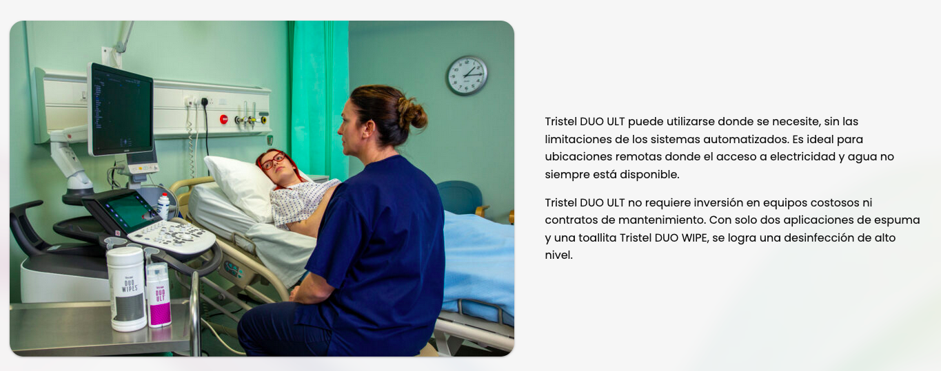 Tristel DUO ULT: Desinfectante Premium de alto nivel para sondas de ecografía e instrumental endocavitario. Máxima eficacia en procedimientos críticos en 30 segundos frente a VPH