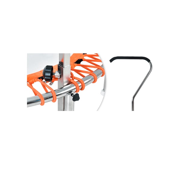 - Barra de apoyo (OPCIONAL): Esta barra sirve como ayuda para la estabilización o la puesta en marcha de los ejercicios. Está diseñada en acero inoxidable marino 304, con un montaje uniaxial y cerradura individual en el pie de su cama elástica. Compatible con los 2 modelos.